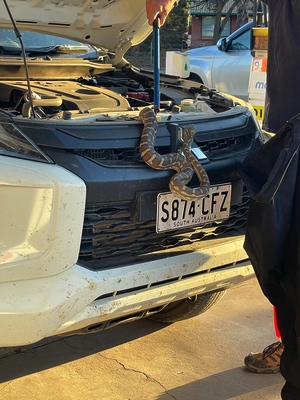 We were the talk of the town, no one has ever seen a carpet snake in this area.... The snake must have been in this hire car for weeks and has travelled from Northern NSW or Queensland inside the engine of the vehicle... Amazing !!