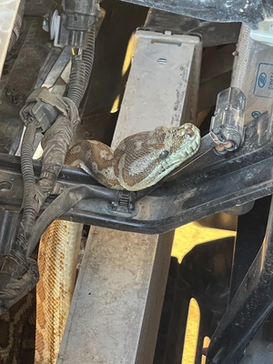 CARPET SNAKE FOUND INSIDE GRILL OF CAR
